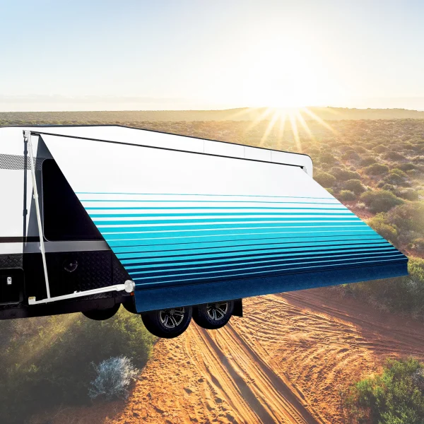 Be the first to review “Aussie Traveller Sunburst Eclipse Blue 13′ Awning $500.00 Fabric and Roll (no arms)”