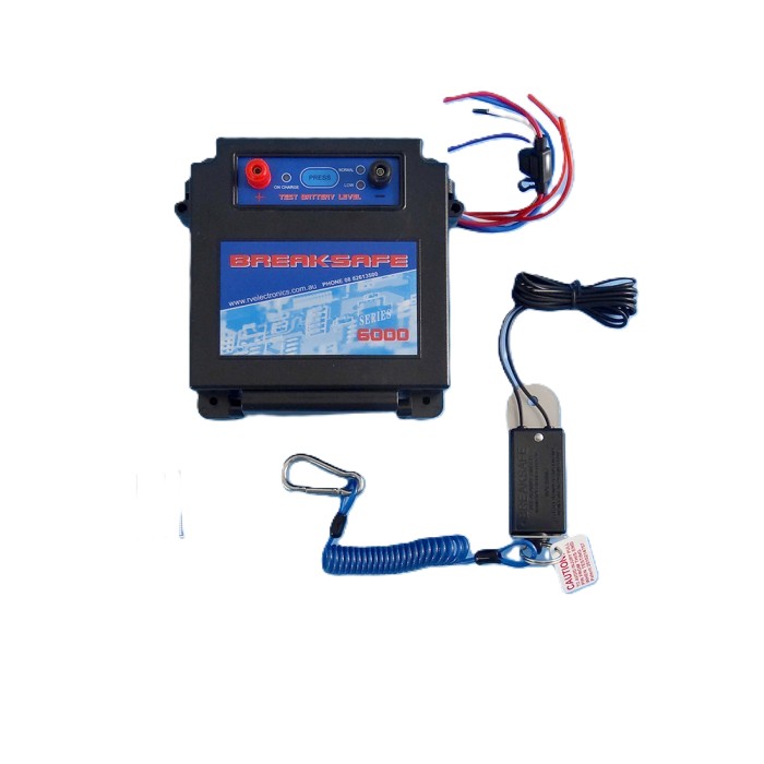 The Breaksafe 6000 Breakaway System activates the electric brake system and brake lights of your Caravan or Trailer if it is accidentally separated from the tow vehicle (e.g. Breakaway).